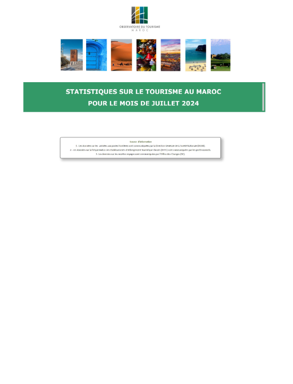 Durant le mois de JUILLET 2024, le volume des arrivées de touristes aux postes frontières a atteint 2 555 368 de touristes avec une évolution de 20% par rapport à JUILLET 2023.