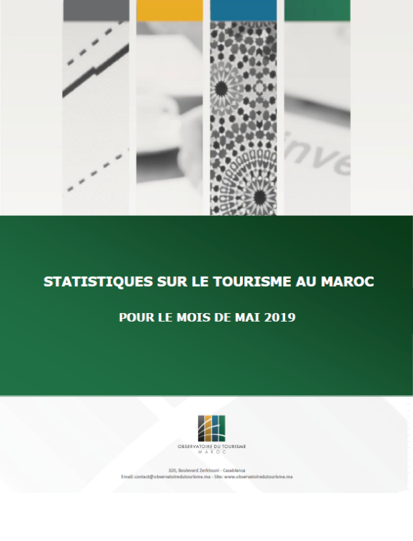 Parallèlement, selon les données communiquées par les professionnels de l’hébergement touristique, le volume des nuitées dans les établissements classés a connu une baisse de -15% en mai 2019, par rapport à celui de 2018 (-11% pour les touristes non‐résidents et -27% pour les résidents). Au niveau géographique, les destinations de Marrakech et d’Agadir ont enregistré un recul en termes de nuitées de -8% et -20% respectivement. Également, Tanger, Fès et Casablanca ont connu une baisse importante de -16%, -11% et -10% respectivement.