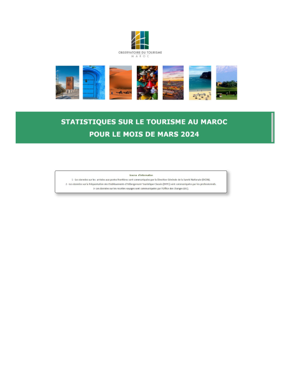Durant le mois de MARS 2024, le volume des arrivées de touristes aux postes frontières a atteint 1 157 507 de touristes avec une évolution de 10% par rapport à MARS 2023.