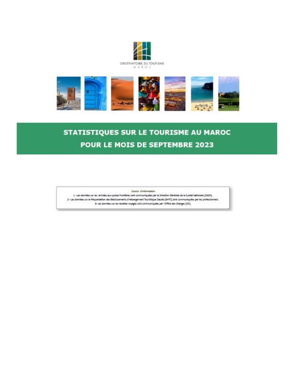 Durant le mois de septembre 2023, le volume des arrivées de touristes aux postes frontières a atteint environ 1 millions de touristes en hausse de +7% par rapport à septembre 2022.